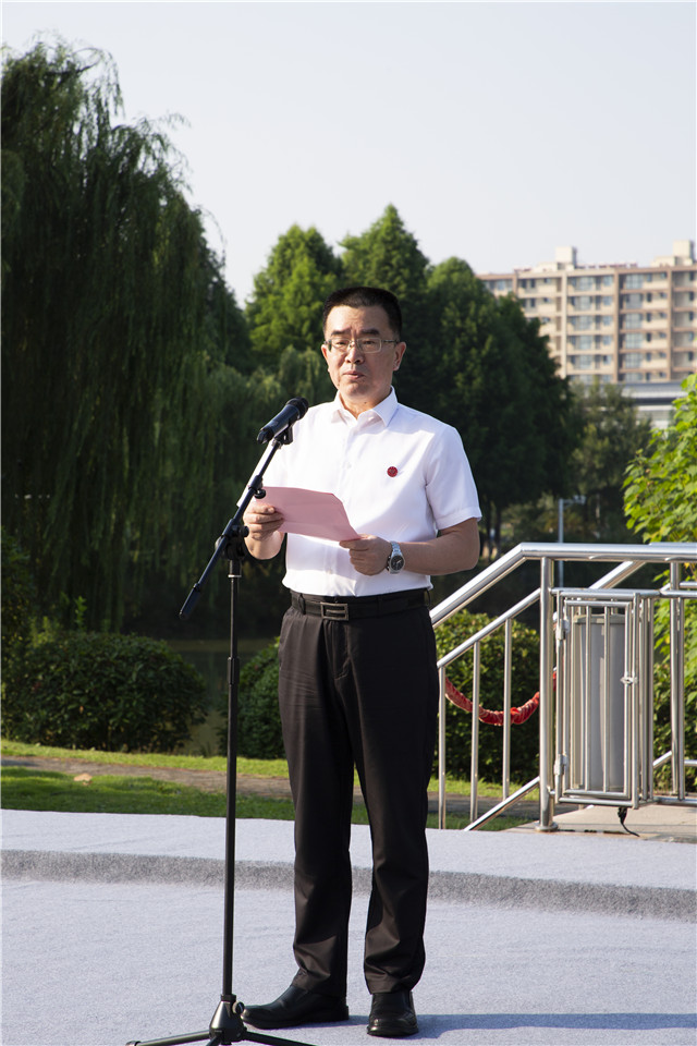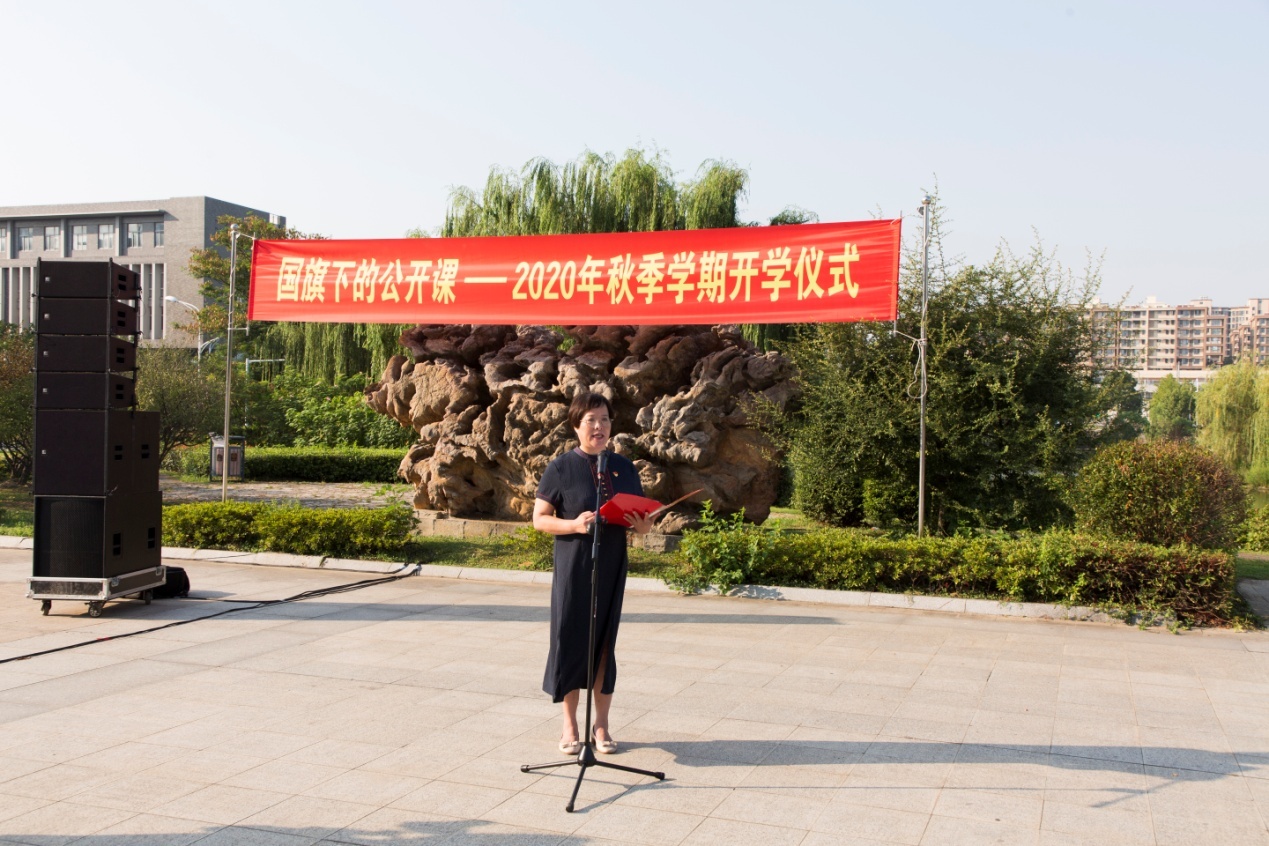 活動最后,校黨委書記金能明發表國旗下的講話。金書記在講話中指出,新冠疫情就是一部社會教科書,抗擊疫情就是一個大課堂。我們從中學到了:祖國強大,中國速度。疫情就是命令,防控就是責任;學到了:義之大者,最美逆行。人民至上、生命至上, 生命重于泰山;學到了:抗擊疫情, 科技支撐。“人類同疾病較量最有力的武器就是科學技術”;學到了:青春力量,青年榜樣。“新時代的中國青年是好樣的,是堪當大任的”。他希望同學們不忘初心、牢記使命,珍惜當下、不負韶華,勤奮拼搏、成長成才, 用新風貌新奮斗新成績譜寫青春無悔的新篇章。