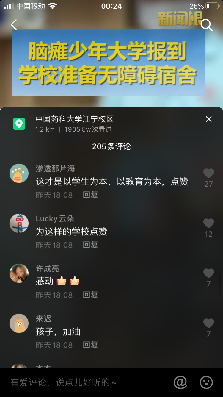 據了解,姚俊鵬入學報到的相關外宣報道同樣引起了人民日報、環球網等各大中央重點新聞網站和國內其他主流媒體的廣泛關注。9月12日,姚俊鵬開學報到的勵志故事以350萬次的熱搜量、1億4000萬次的點擊閱讀量,登上了新浪熱搜榜的第2位。來自全國各地的網友紛紛在報道下方點贊留言評論“了不起的少年,努力的人不會被辜負”“一所溫暖人心的大學”“這才是以學生為本、以教育為本”,不僅表達了對不屈于命運、自強不息的逆風少年姚俊鵬的敬佩和祝福之情,同時也對我校師生的溫情關懷和暖心幫扶之舉點贊打call,給予了高度評價。截至9月14日中午12時,我校腦癱少年姚俊鵬開學報到的勵志溫情故事在全網各媒體平臺總閱讀瀏覽量已達6.2億人次、評論留言總量達6.5萬余人次、點贊量近180萬人次。