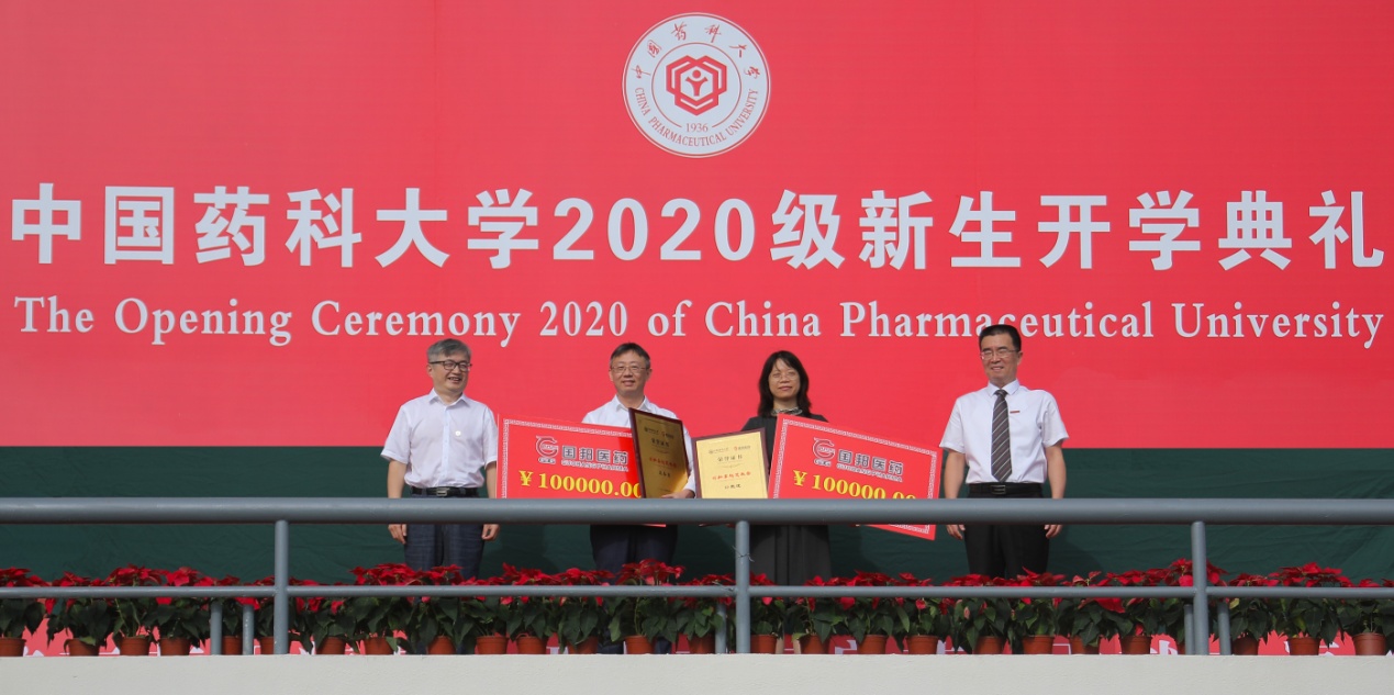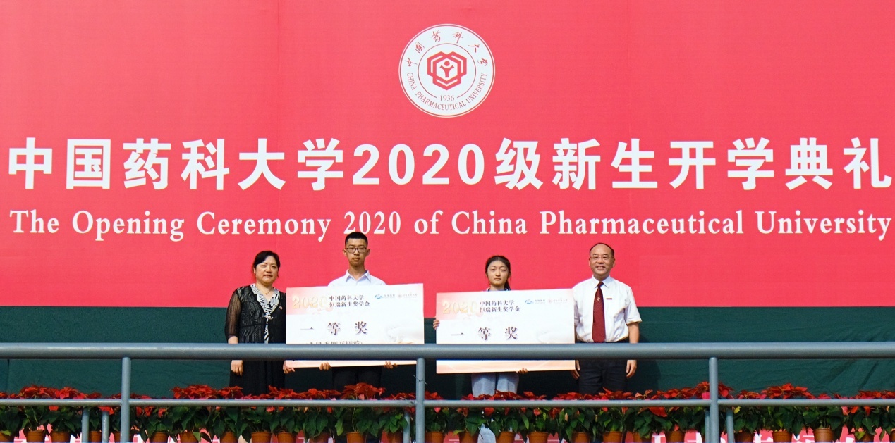 為了提升學校生源質量,鼓勵更多優秀高中學子報考中國藥科大學,藥大校友企業——江蘇恒瑞醫藥于今年起在我校設立“恒瑞藥業新生獎學金”,獎勵報考我校的優秀學子。校黨委副書記、副校長王正華宣讀表彰決定。校長來茂德、恒瑞醫藥常務副總裁蔣素梅共同為獲獎新生代表頒發獎牌。同時,為激發一線教師的工作熱情,選樹愛生重教標兵,在全校形成愛崗敬業、奮發向上、教書育人工作氛圍。開學典禮現場舉行了第七屆“國邦卓越獎教金”頒獎儀式。副校長陸濤宣讀表彰決定,校黨委書記金能明、國邦藥業董事長邱家軍為孫敏捷、吳春勇兩位獲獎教師頒發獎金、證書。藥學院教師、國邦獎教金獲得者吳春勇作為教師代表發言。他向廣大新生表示誠摯的祝賀和熱烈的歡迎,并希望同學們要牢記興藥為民,榮校報國的傳統與責任;在學習之路上孜孜以求,在實踐中不斷創新;珍惜光陰,珍惜學校情、師生情、同窗情、校友情!在最美好的年華,譜寫最美好的人生。