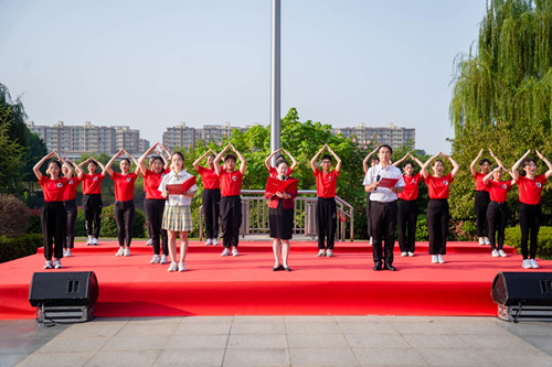 71年,光輝歲月彈指揮間,71年,中華大地滄桑巨變。71年來,無數時代青年前赴后繼,將個人奮斗融入到祖國前途命運和民族復興的征程中,以青春之我,創建青春之國家,青春之民族。伴隨著由20余名中藥青年共同演繹的手語《國家》,中藥學院院長譚寧華教授、對口扶貧陜西鎮坪的天然藥化系張杰老師以及千禧一代中藥學2020級新生劉嘉祺,分別結合祖國站起來、富起來、強起來的時代背景與自身成長經歷,共同講述了一篇書寫“青春與祖國共奮進”的華彩樂章。講述最后,三位師生懷著激動的心情向全校師生發出最強音:你是中國人嗎?你愛中國嗎?你愿意青春與祖國共奮進嗎?“是”、“愛”、“愿意”,一句句鏗鏘有力的回答帶給現場師生直抵人心的力量。朝氣蓬勃的青年、熱情嘹亮的回答、奮勇騰飛的夢想,藥大學子的青春力量在朝陽下與祖國共奮進共成長。