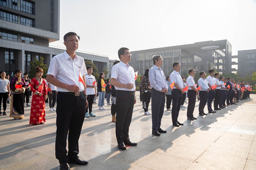10月1日,由校團委主辦、中藥學院承辦的中國藥科大學“國旗下的公開課”第十三次集體課程暨“青春與祖國共奮進”慶祝中華人民共和國成立71周年升國旗儀式在江寧校區1936廣場舉行。校黨委書記金能明,副校長孔令義,黨委副書記、副校長王正華,副校長袁浩出席儀式,相關職能部門負責人、各學院領導、教師和輔導員代表以及來自全校各學院的五百余名學生代表參加儀式。儀式由中藥學院黨委書記趙健主持。