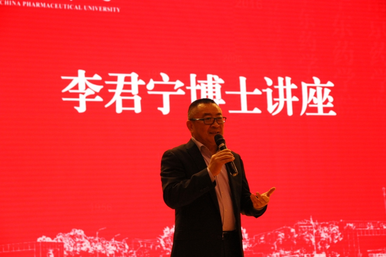 講座開(kāi)始前,于廣琮副校長(zhǎng)代表學(xué)校向李君寧博士贈(zèng)送了一套“學(xué)校80周年校慶定制校徽”和一套“醉美藥大”主題書(shū)簽并現(xiàn)場(chǎng)為他佩戴校徽。