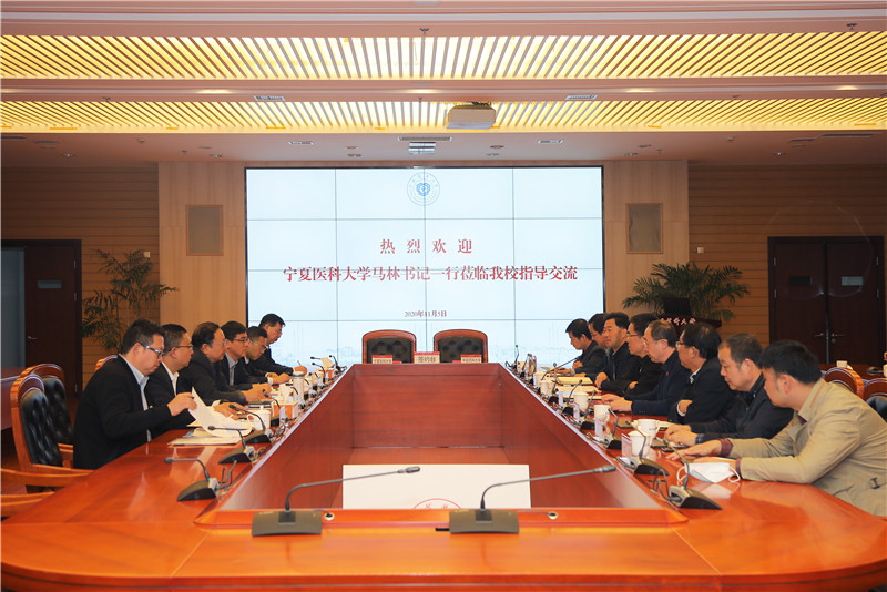 金能明書記首先代表學校對馬林書記一行表示熱烈歡迎,并深情回顧了在寧夏工作的經歷。他表示,寧夏醫科大學地處西北腹地,在醫學領域優勢明顯,近年來學校發展突飛猛進,創造了許多值得兄弟院校學習借鑒的成功經驗。希望兩校進一步加強交流協作,全方位、多層次的深化合作,把握國家醫藥產業重大發展機遇,共同促進東西部醫藥事業的發展與創新。