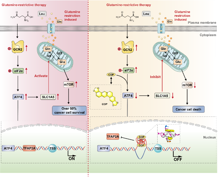 黃連堿靶向ATF4-G4增敏谷氨酰胺限制療法示意圖