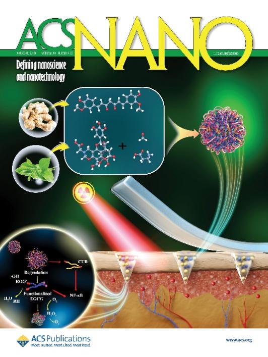 近日,工學院鄧大偉課題組在工科頂尖期刊ACS Nano(IF:15.8)發表最新研究論文:Co-Assembled Binary Polyphenol Natural Products for the Prevention and Treatment of Radiation-Induced Skin Injury(已被遴選為封面論文)。我院碩士研究生胡彥瑋和博士研究生苗宇航為論文第一作者,鄧大偉教授為論文通訊作者,中國藥科大學為論文唯一通訊單位。