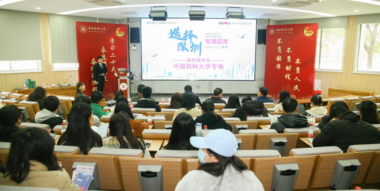 會前,深圳市坪山區委組織部還在我校舉辦了緊缺專業公務員招錄政策和醫藥產業引才政策宣講,我校近百名2025屆畢業生參加宣講會。