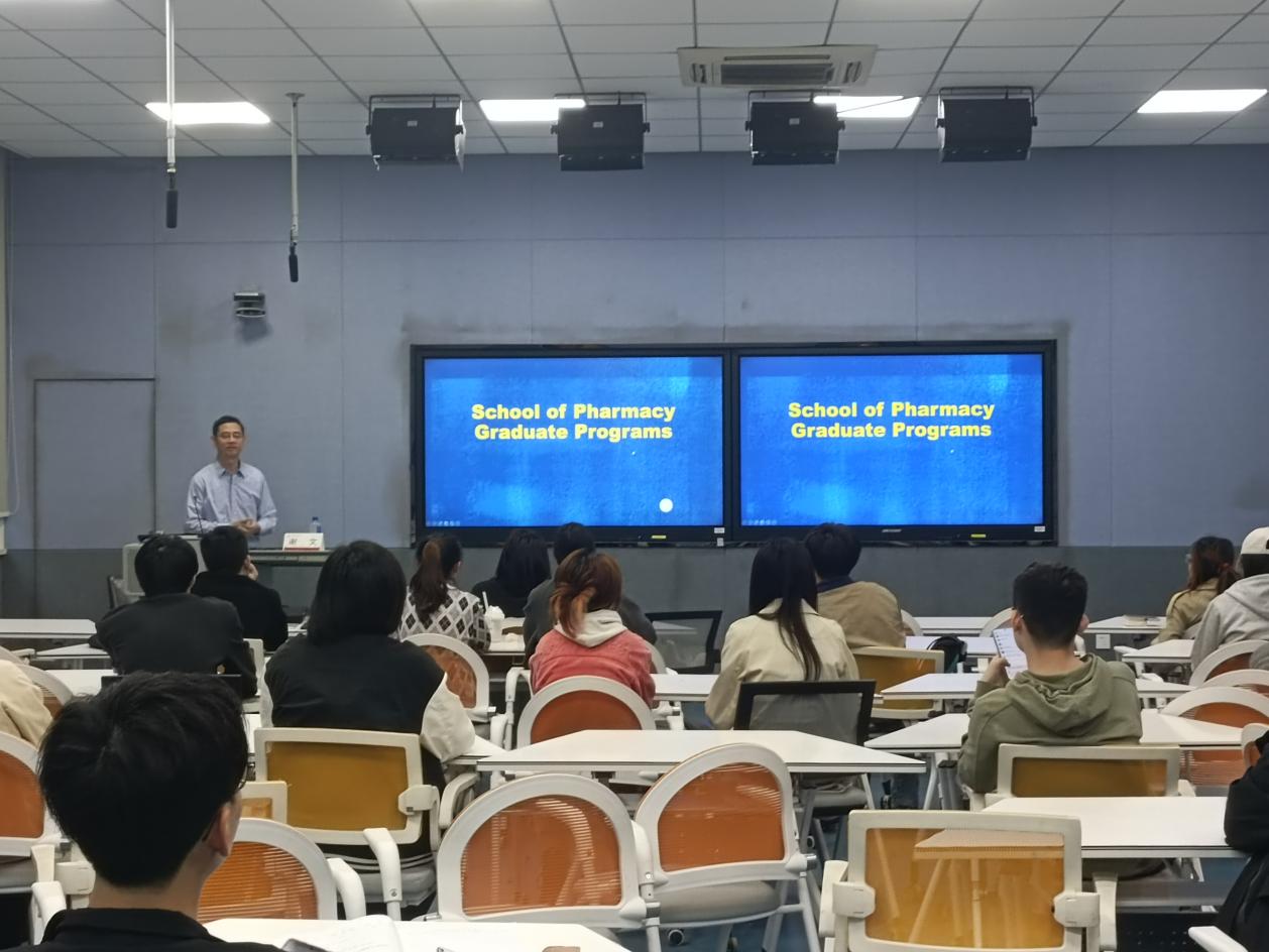 來訪期間,學校在江寧校區開展匹茲堡大學留學宣講會,謝文為我校學子宣講匹茲堡大學藥學院碩博項目、本科生暑期實習項目,吸引了40余名學生前來聽講咨詢。3月25日,謝文在新實驗大樓作了題為“代謝酶CYP1B1調控肝星狀細胞活化及肝纖維化的細胞分子機理與代謝基礎”的學術講座,詳細介紹了其課題組在肝星型細胞特異性CYP1B1調控肝纖維化進展這一研究領域取得的新突破,并分享了肝星型細胞靶向干預及肝纖維化相關的研究經驗?,F場師生與謝文交流互動,氣氛熱烈。