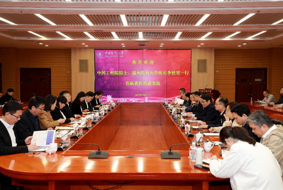 郝海平對李校堃一行來訪表示誠摯歡迎,并從師資隊伍、學科建設、科學研究等方面簡要介紹了學校近年來的發展情況和改革舉措。他表示,生物醫藥領域是當今大國博弈的主戰場,學校正深入學習貫徹全國兩會精神和習近平總書記關于生物醫藥產業發展的重要指示精神,積極探索校地企合作新范式,以教育科技人才一體化發展模式加速孕育原創新藥。他指出,溫州醫科大學作為國內醫藥行業特色高校,辦學歷史悠久,學科實力雄厚,希望雙方圍繞新藥研發全鏈條,不斷加強校際有組織科研合作,持續豐富合作內涵。