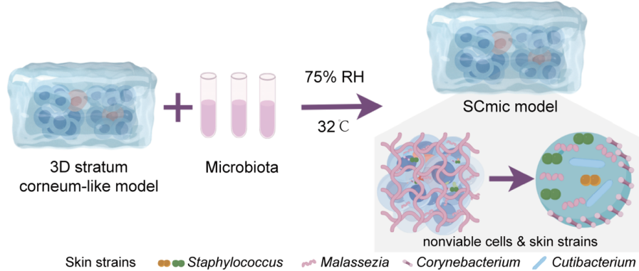 近日,中藥學院吳建新教授、黃慶教授團隊在Nature Communications上在線發表了題為“Microecology in vitro model replicates the human skin microbiome interactions”的研究論文,構建了首個類角質層微生態模型(SCmic),為皮膚微生物組研究提供了全新的工具平臺。中藥學院2023級博士生王攀、藥學院李慧娟講師、中藥學院吳建新教授為共同第一作者,中藥學院吳建新教授和黃慶教授為本文共同通訊作者,中國藥科大學為論文的唯一通訊單位。