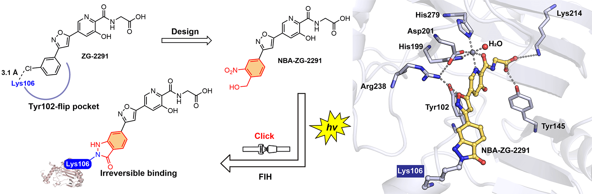 圖:光控賴氨酸靶向FIH共價抑制劑NBA-ZG-2291設計思路