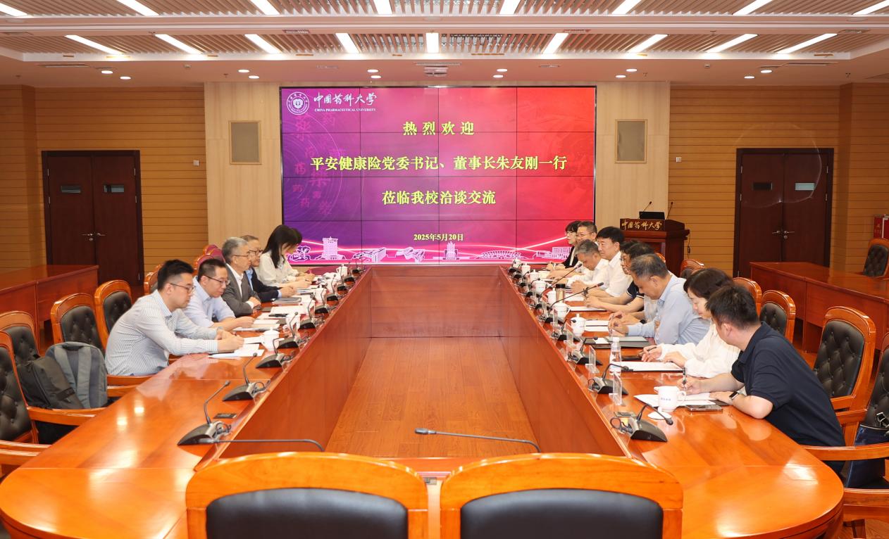 朱友剛對我校的熱情接待表示感謝,對學校近年來各項事業發展取得的優異成績給予高度評價,并簡要介紹了平安集團在大健康領域的布局。他表示,平安健康險依托集團“醫療健康生態圈”資源,堅持“保險+服務+科技”發展模式,通過整合醫療資源、創新保險產品和服務、推動醫藥健康產業科技成果轉化,提供全生命周期的健康保障。中國藥科大學科研體系完備,政產學研用合作舉措創新。希望雙方以此次交流為契機,在創新藥物保險支付、健康管理服務、產業基金投資等方面深度合作,打通“研發-應用-保障”全鏈條。