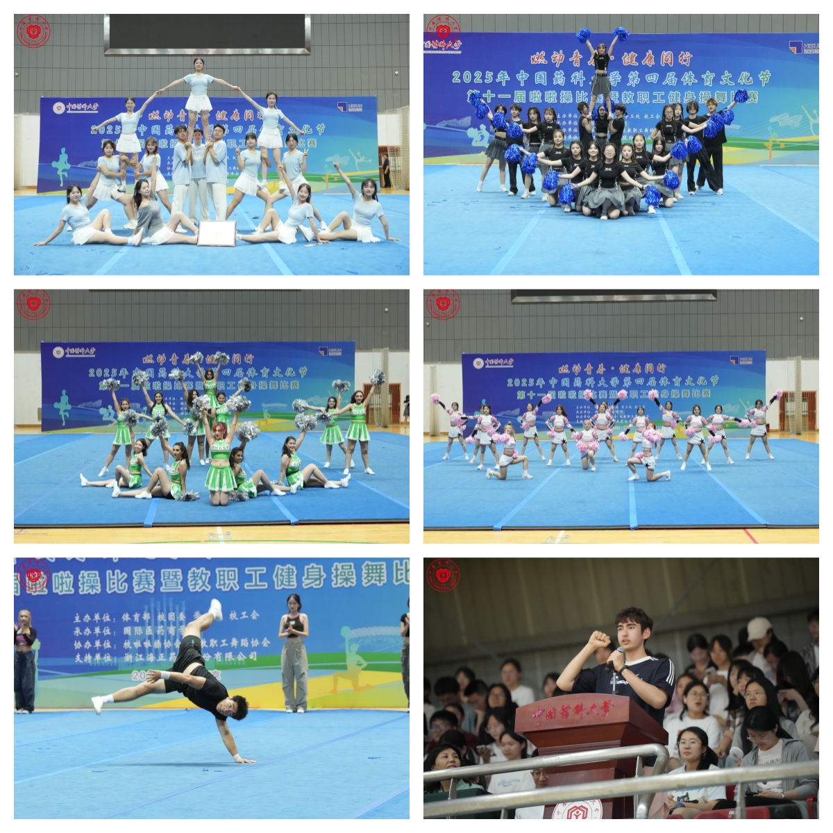 5月21日晚,由體育部、校團委、學工處、校工會聯合主辦,國際醫藥商學院承辦的第十一屆啦啦操暨教職工健身操比賽在江寧校區體育館舉行。校黨委副書記朱紅,工會、團委、學工處等相關職能部門及各二級黨組織相關負責同志出席活動。活動由體育部黨委書記、主任劉蘇主持。