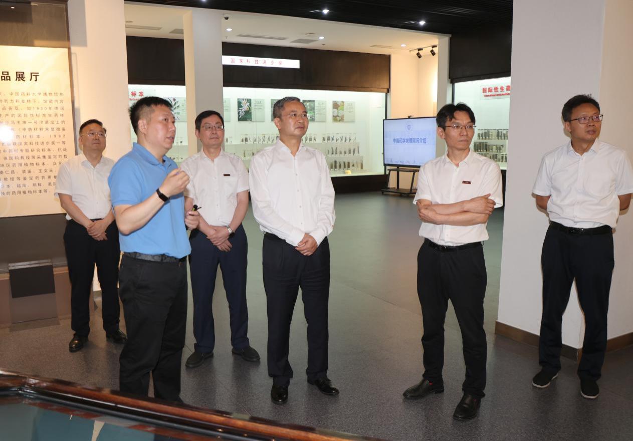 熊四皓一行實地參觀了中國藥科大學校史館和藥學博物館,聽取了郝海平對中國藥學發展簡況等方面工作匯報,詳細了解了畢業生就業情況以及學校“十四五”以來改革發展成果。熊四皓希望學校把做好畢業生就業工作擺在更加突出位置,進一步完善就業工作服務體系,全力促進畢業生高質量充分就業。