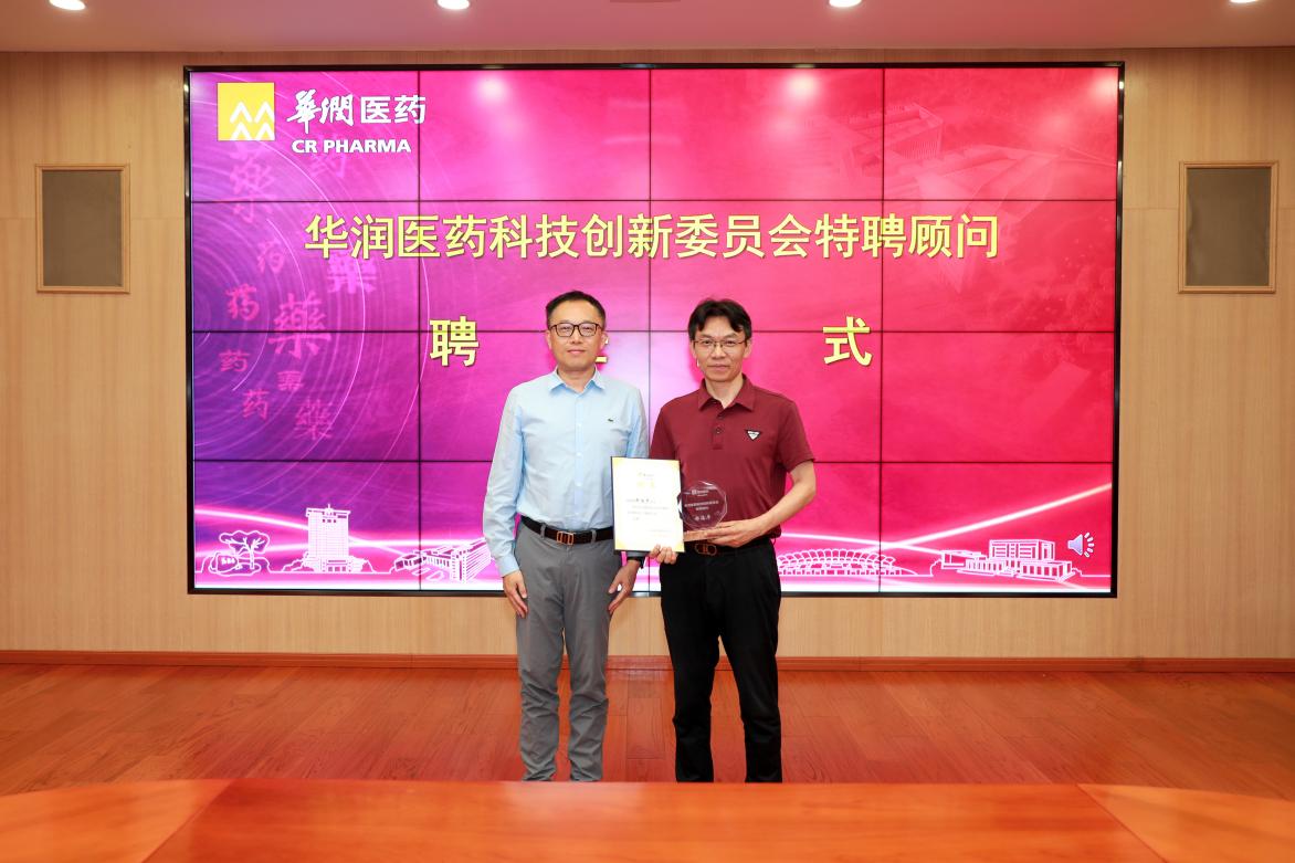 科學技術研究院副院長狄斌、華潤醫藥研發管理部總監羅遵平分別介紹了學校校企合作情況及華潤醫藥集團情況、未來發展規劃。華潤醫藥舉行了集團科技創新委員會特聘顧問聘任儀式。