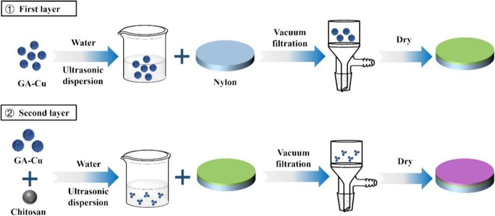 圖3.GA-Cu@CS/GA-Cu/nylon膜的制備示意圖