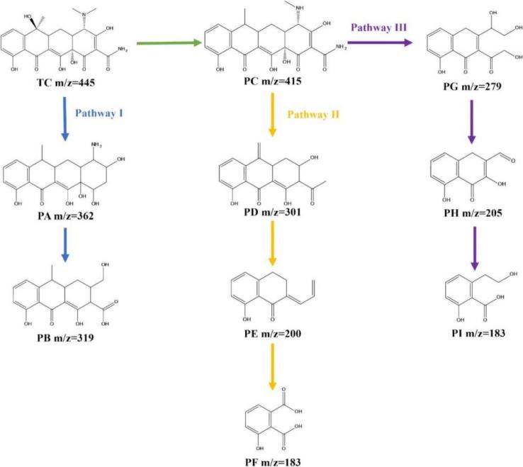 圖4. GA-Cu 納米酶對TC的可能降解途徑