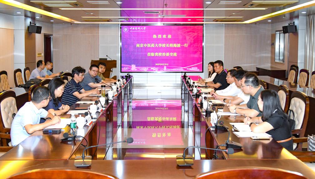 近日,南京中醫藥大學校長程海波一行來我校調研交流。校長郝海平,校長辦公室、發展規劃與學科建設處、人事處等相關職能部門負責同志參加交流會。