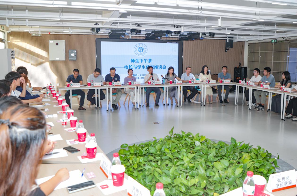 郝海平認真傾聽每位學生的發言,對大家善于發現問題、敢于提出問題表示肯定。他指出,學校將認真研究學生們提出的意見建議,持續深化改革、優化管理、改善條件,為青年大學生的學習生活和成長發展提供更加良好的環境。郝海平對青年大學生提出三點希望:一是提高自我要求。要迅速適應大學學習和生活,抓住問題的關鍵所在,嚴格要求自我,對不同問題提出不同的應對之策。二是轉變學習方法。要善于思考,努力培養創新能力,擁抱人工智能時代學習生態和學習方式新的變化,充分發揮主觀能動性,學會自我學習、主動學習、互相學習。三是堅定信念信心。要熱愛學校,熱愛所學專業,把握時代發展潮流,洞察醫藥行業未來發展大勢,做好生涯規劃,為個人成長發展打下堅實基礎。