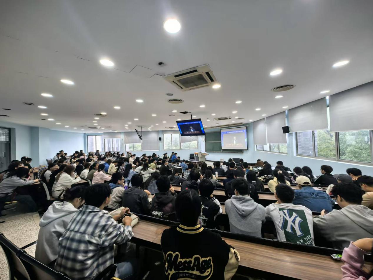 在互動環節,新生圍繞學業發展、科研實踐、創新創業、職業規劃等主題踴躍提問,郝海平結合學科發展趨勢和個人體會,分別進行了深入的解答,現場氣氛熱烈。
