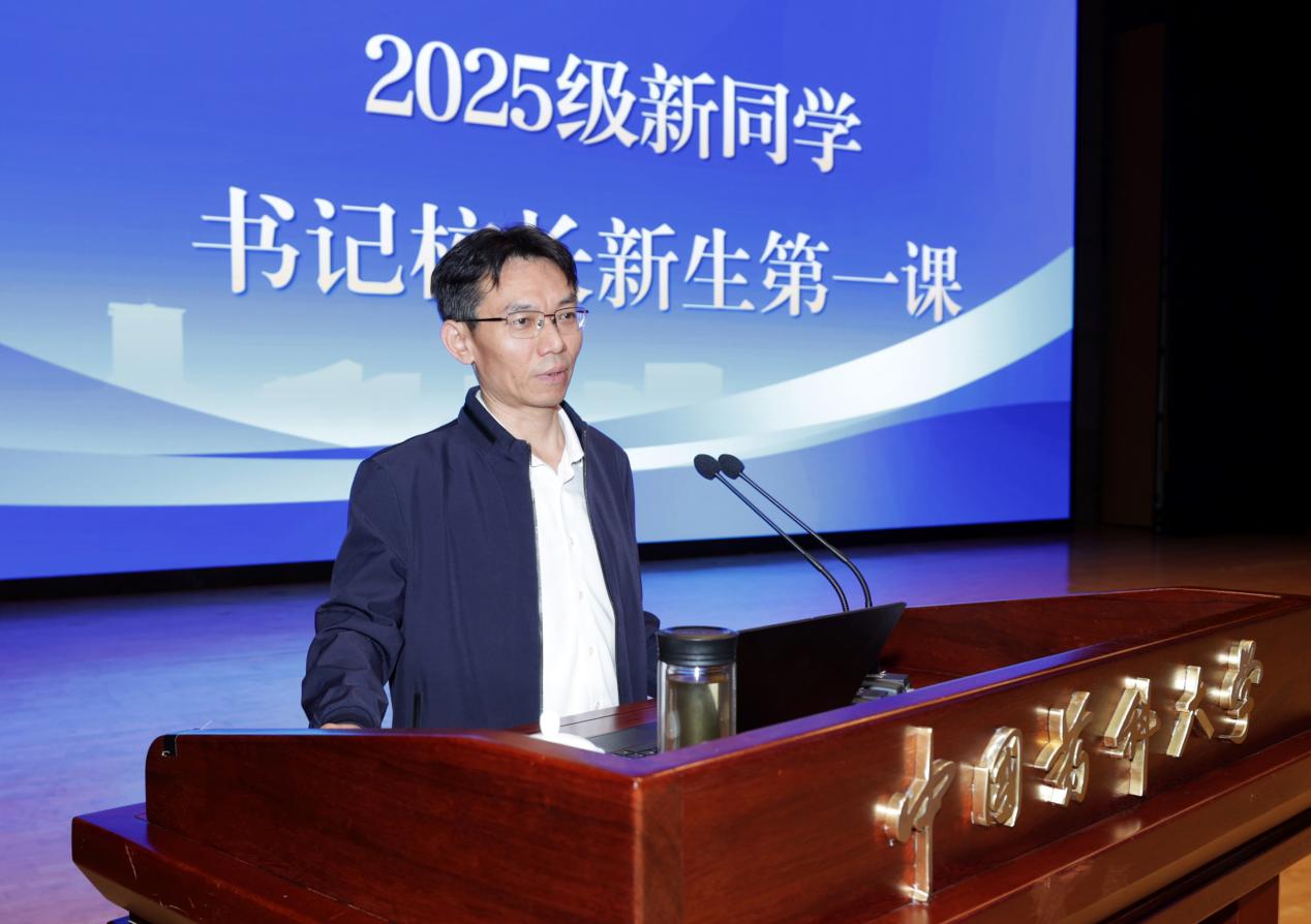 10月18日上午,校長郝海平在江寧校區會議中心大禮堂為2025級全體新生講授“新生第一課”,全校另設31個分會場同步直播。校黨委副書記朱紅主持大課。有關職能部門負責同志、各學院分管學生工作黨委副書記、新生輔導員參加大課。