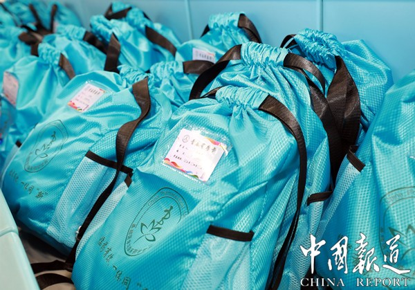 記者在藥大迎新報到現(xiàn)場看到,該校基礎(chǔ)醫(yī)學(xué)與臨床藥學(xué)學(xué)院的每一位新生都領(lǐng)到了一個天藍色的運動背包,上面印有學(xué)院LOGO和“臨藥有你,一體同‘新’”字樣的歡迎標語。