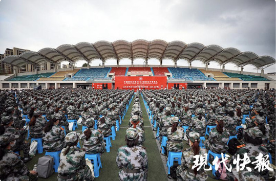 此外,開學典禮后,由中國藥科大學新生軍訓營推選出的 12個代表隊、500多名參賽選手在熱血鏗鏘的軍歌中唱響青春。
