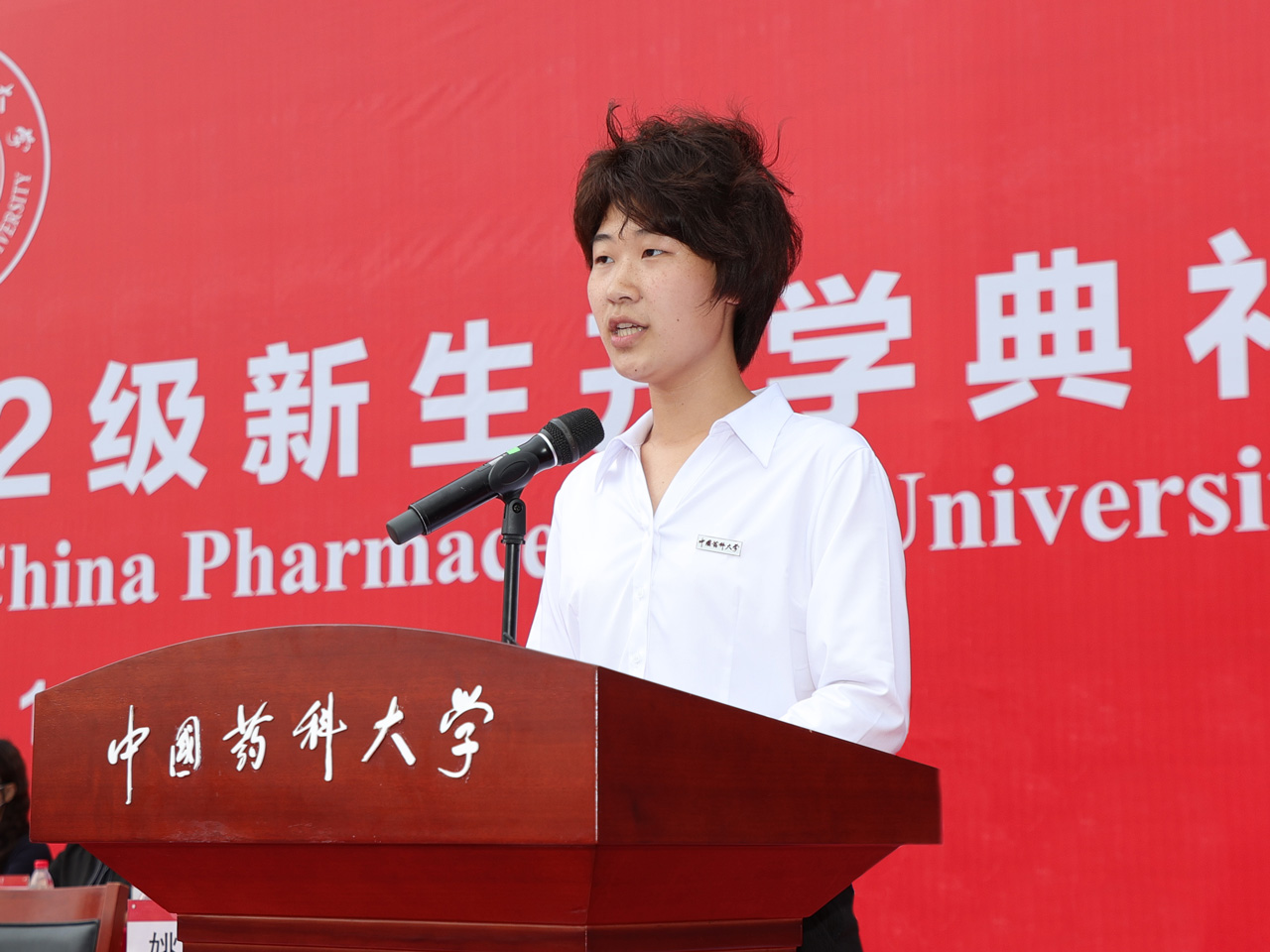 以后浪之勢,助藥興之力。來自遼寧的侯冠蘇代表藥大2022級本科生新生發言,她與藥大的不解之緣來自一張小小的藥品說明書。“小時候,看藥品說明書上總畫著奇怪的圖案,‘長卿、半夏、剪秋、雪見、景天’等古風味十足的藥名也獨具美感,讓我特別好奇,希望有一天也能‘創造’自己的藥品說明書。”侯冠蘇表示,作為新時代藥學青年,將以惠眾濟世為己任,以仁愛之心對待世間病痛,將一生熱愛獻于祖國醫藥事業并為其奮斗終生。