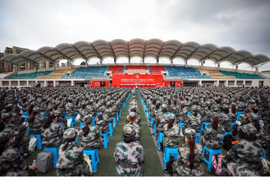 值得一提的是,與以往中國藥大開學典禮不同,今年新增了軍訓賽歌會,由中國藥科大學新生軍訓營推選出的12個代表隊、500多名參賽選手在熱血鏗鏘的軍歌中禮贊祖國母親的壯美山河,燃唱百年黨史的光輝歷程,彰顯藥大學子風采。