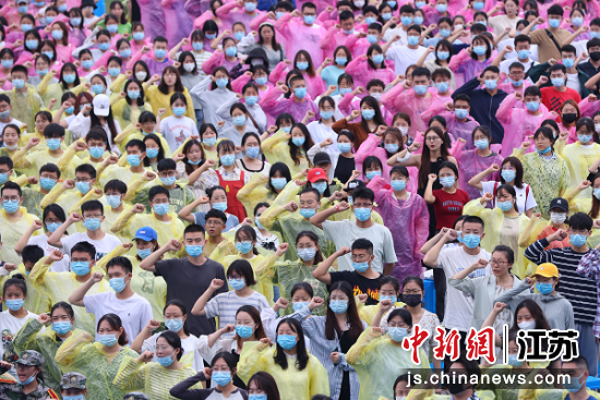 在領(lǐng)誓人的帶領(lǐng)下,全體藥大新生高舉右拳,進(jìn)行了莊嚴(yán)的藥學(xué)生宣誓儀式。中新社記者泱波攝