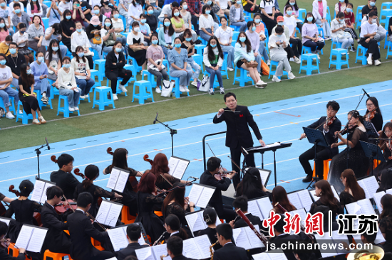 中新網(wǎng)江蘇新聞9月13日電(姜晨)“愛(ài)你孤身走暗巷,愛(ài)你不跪的模樣,愛(ài)你對(duì)峙過(guò)絕望,不肯哭一場(chǎng)……”13日,中國(guó)藥科大學(xué)(簡(jiǎn)稱“藥大”)在江寧校區(qū)體育場(chǎng)舉行2022級(jí)新生開(kāi)學(xué)典禮。5505名新生齊聚一堂,在學(xué)生交響樂(lè)團(tuán)的伴奏下,唱響時(shí)下最熱門、最勵(lì)志的歌曲《孤勇者》。恢弘大氣的交響樂(lè)、激昂奮進(jìn)的流行曲、振聾發(fā)聵的大合唱,點(diǎn)燃了全體學(xué)生的熱情,激發(fā)了新生們昂揚(yáng)向上的情感共鳴。