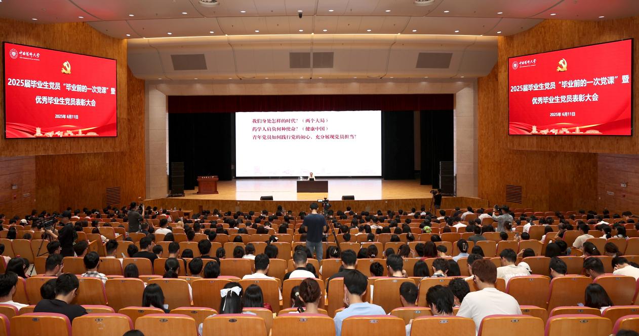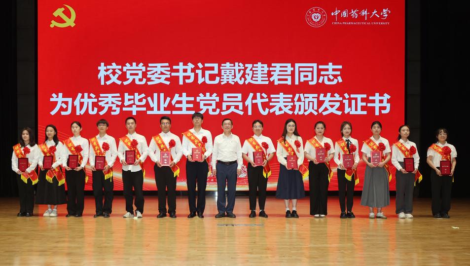 活動在莊嚴的國歌聲中拉開帷幕,朱紅宣讀優秀畢業生黨員表彰決定,戴建君為優秀畢業生黨員代表頒發榮譽證書。2025屆制藥工程專業本科畢業生左凱旋同學作為優秀畢業生黨員代表發表獲獎感言。陳文恩宣讀學校黨委《致中國藥科大學2025屆畢業生黨員的一封信》。