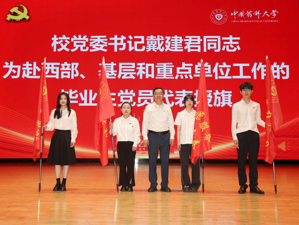 會上,戴建君為即將赴西部、基層和重點單位工作的畢業生黨員代表授旗,勉勵他們淬煉品格、增長才干、挺膺擔當,讓青春旗幟飄揚在祖國最需要的地方。