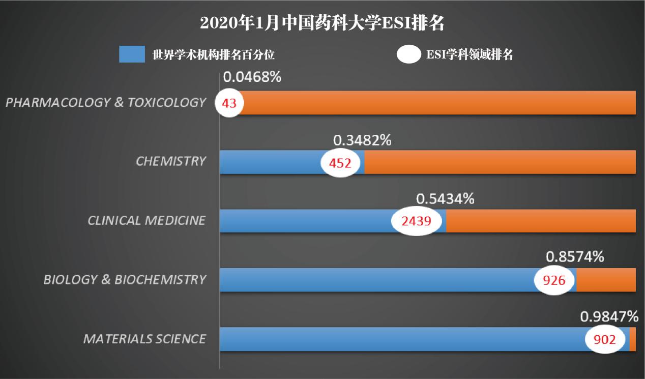 1月9日,科睿唯安(Clarivate Analytics)公布了2020年1月的ESI最新數據。我校藥理學與毒理學首次進入全球前萬分之五,位列全球第43位,較上一期提升4位,穩居國內高校第一。材料科學首次進入ESI全球前1%,至此,我校進入ESI全球前1%學科數突破5個(藥理學與毒理學、化學、臨床醫學、生物與生物化學、材料科學)。