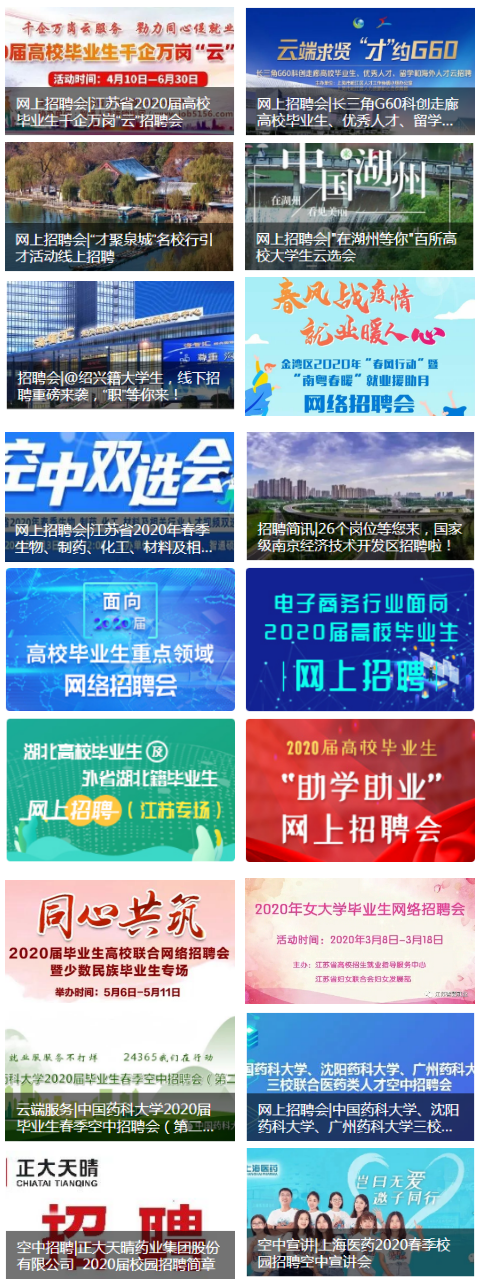 近日,由學(xué)生工作處就業(yè)辦與校友會(huì)聯(lián)合舉辦的中國(guó)藥科大學(xué)2020年校友企業(yè)空中雙選會(huì)在智聯(lián)招聘網(wǎng)絡(luò)平臺(tái)圓滿完成。隨著畢業(yè)生陸續(xù)返校,我校“云端戰(zhàn)‘疫’,穩(wěn)心就業(yè)”系列云聘會(huì)逐漸進(jìn)入簽約高峰期。