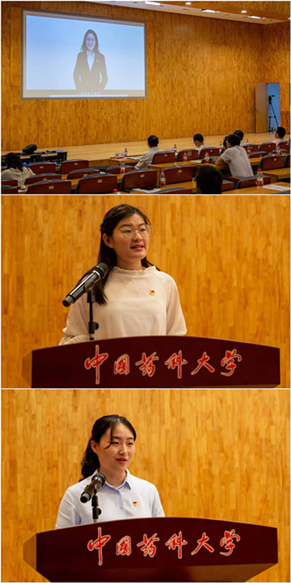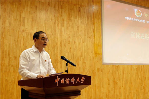 下午4時大會開始。全體起立,高唱國歌。校團委書記戴亮宣讀表彰決定。校黨委書記金能明為我校2019-2020學年獲得共青團工作校級、省級和國家級榮譽的先進集體和個人代表頒獎,并贈送習近平總書記寄語青年匯編。2019年度全國優秀共青團員、第七十屆校學生會主席、中藥學院劉冬妮同學,我校疫情防控優秀志愿者代表、校優秀共青團員理學院戚彩玉同學,校五四紅旗團支部中藥學院1702102班團支部書記李文靜同學代表受表彰的集體和個人發言。