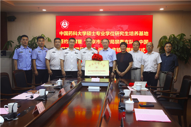 6月22日下午,中國藥科大學碩士專業學位研究生培養基地簽約掛牌暨“南京市公安局禁毒支隊-中國藥科大學藥學院”戰略合作協議簽約儀式在南京市公安局禁毒支隊舉行。南京市公安局黨委委員曹存福,南京市公安局禁毒支隊隊長仲軍,南京市公安局禁毒支隊政委賀煒珉,中國藥科大學副校長陸濤,中國藥科大學藥學院黨委書記張仕英,藥學院常務副院長李志裕,藥學院副院長狄斌等出席簽約儀式。