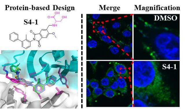 PD-L1蛋白在腫瘤細(xì)胞表面廣泛分布,表達上調(diào)的PD-L1與T細(xì)胞表面的PD-1結(jié)合將抑制T細(xì)胞的增殖與激活,腫瘤細(xì)胞將實現(xiàn)“免疫逃逸”。本研究報道了一類鄰苯二甲酰亞胺類化合物,并進行了系統(tǒng)的構(gòu)效關(guān)系研究。優(yōu)選化合物S4-1蛋白水平IC50值為6.1 nM,顯著抑制PD-1/PD-L1蛋白-蛋白相互作用。藥效學(xué)評估過程中,S4-1通過降低PD-1/PD-L1相互作用,在細(xì)胞和動物水平恢復(fù)T細(xì)胞的活化,增強免疫細(xì)胞的抗腫瘤活性。