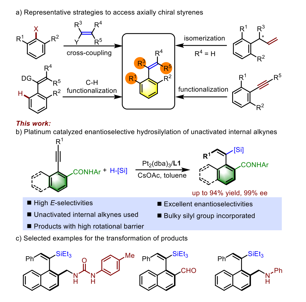 鉑催化內(nèi)部炔烴立體選擇性氫硅化示意圖
