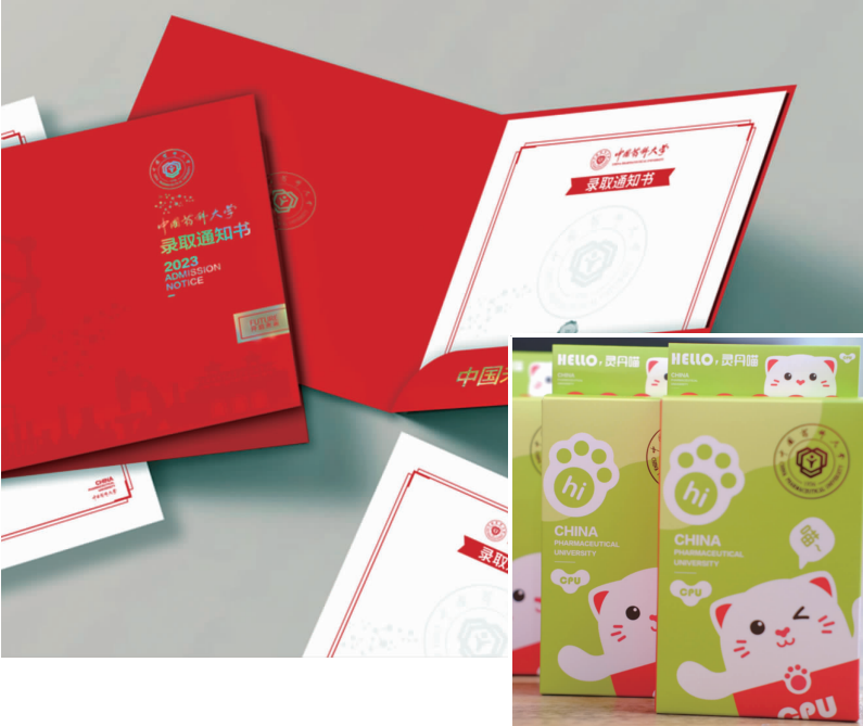 隨著通知書一起寄出的,還有一只“招才喵”。這只“招才喵”是中國(guó)藥科大學(xué)今年剛推出的本科招生宣傳形象大使——靈丹喵。不僅如此,結(jié)合靈丹喵的創(chuàng)意,學(xué)校還制作了許多文創(chuàng)產(chǎn)品,包括行李牌和鑰匙扣等,這些創(chuàng)意設(shè)計(jì)將伴隨藥大學(xué)子開啟人生新旅程。