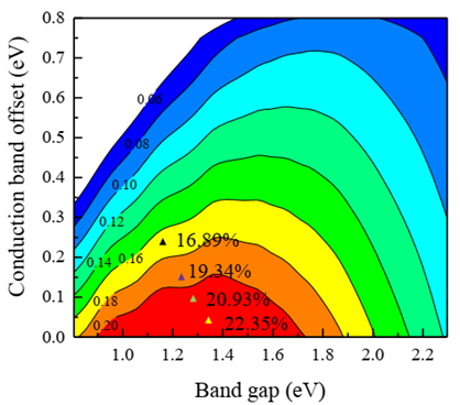 我校鐘文英教授、徐波副教授研究團隊研究發現一種喹唑啉基二維有機骨架結構材料(COF)是直接帶隙的半導體材料,其禁帶寬度只有1.2 eV左右,同時能夠有效的吸收可見光和紅外光的能量。通過理論預測,如果和硒化鋅形成異質結時,光電轉換效率可以高達22.35%。這個數值高于單結結構的硅基太陽能電池的效率,與現在鹵素鈣鈦礦太陽能電池的效率相媲美。喹唑啉基二維有機骨架結構材料只有碳,氮等元素,沒有重金屬元素的危害,成本低,相對比重非常小,是一種很有潛力的光伏材料。該項工作報道了一種能夠在光伏領域應用的二維有機材料,為尋找和設計新型光伏材料提供了新思路,同時也為COF材料提供了一種潛在的應用方向。