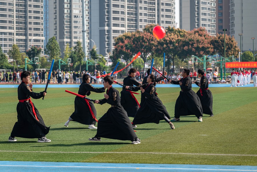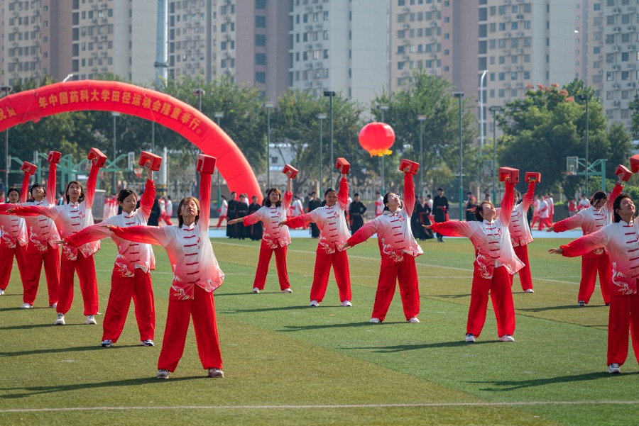 10月20日上午,中國(guó)藥科大學(xué)2023年運(yùn)動(dòng)會(huì)拉開(kāi)帷幕。此次運(yùn)動(dòng)會(huì)一改往年千人團(tuán)體操的表演形式,將特色體育課程內(nèi)容搬上開(kāi)幕式舞臺(tái),集中展示了八段錦、石鎖、武術(shù)兵道等多個(gè)特色體育課程。