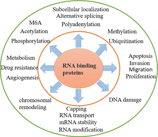 此外,該團(tuán)隊(duì)還在Journal of Hematology & Oncology (IF 11.05)上發(fā)表了題為“RNA-binding proteins in tumor progression”的文章(全文鏈接:https://jhoonline.biomedcentral.com/articles/10.1186/s13045-020-00927-w)。RNA結(jié)合蛋白(RBP)具有高度動(dòng)態(tài)的時(shí)空調(diào)節(jié)性和重要的生物學(xué)功能,參與調(diào)控RNA整個(gè)生命歷程,包括調(diào)節(jié)RNA剪接、聚腺苷酸化、mRNA穩(wěn)定性、定位和翻譯等。每個(gè)過(guò)程的改變都會(huì)影響RNA的生命周期,產(chǎn)生異常的蛋白質(zhì)表型,從而導(dǎo)致腫瘤的發(fā)生和發(fā)展。了解RBP發(fā)揮功能的作用機(jī)制以及被調(diào)控機(jī)制可以更好的理解疾病的發(fā)生發(fā)展機(jī)理。該文章主要綜述了RBP在各種腫瘤中的生物學(xué)功能、相關(guān)機(jī)制,及其被調(diào)控的機(jī)制,并介紹了以RBP為靶點(diǎn)的小分子抑制劑的研發(fā)現(xiàn)狀及臨床應(yīng)用。本文為基于RBP藥物的開(kāi)發(fā)提供了參考靶點(diǎn)。研究生覃海和倪海威為本文共同第一作者,奚濤教授和鄭祿楓副研究員為本文通訊作者。