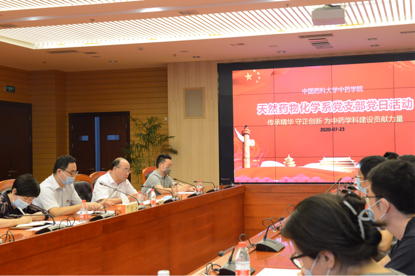 為學習貫徹落實全國中醫藥大會精神,為中藥學院“十四五”發展規劃建言獻策,7月23日下午,中藥學院天然藥物化學系黨支部在江寧校區會議中心多功能廳舉行了以“傳承精華,守正創新,為中藥學科建設貢獻力量”為主題的黨日活動。校長來茂德作為聯系支部的校領導參加支部活動,中藥學院黨委書記趙健陪同參加。活動由黨支部書記王小兵主持。